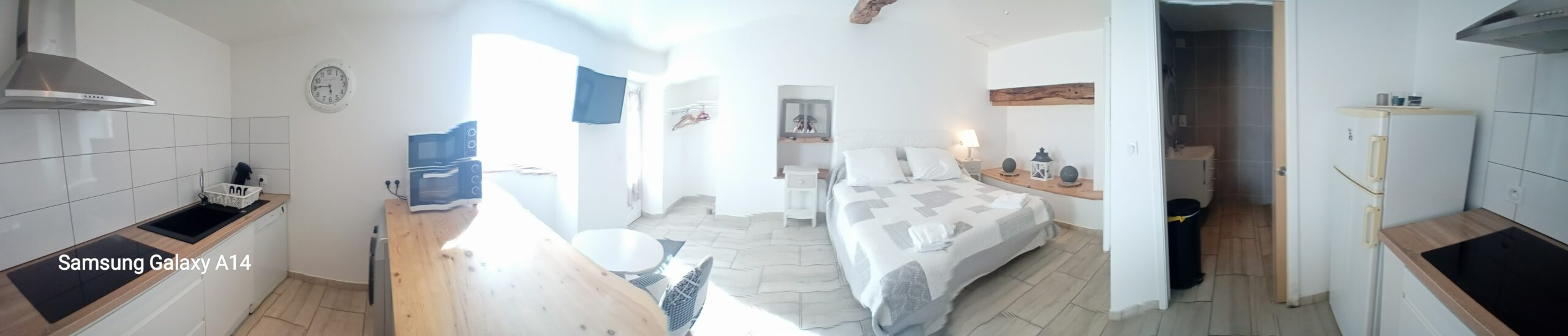 Tout y est pensé pour un séjour paisible : coin nuit douillet, kitchenette équipée, ambiance feutrée… Le charme opère dès l’entrée, comme un petit refuge intime où l’on se sent tout de suite bien.